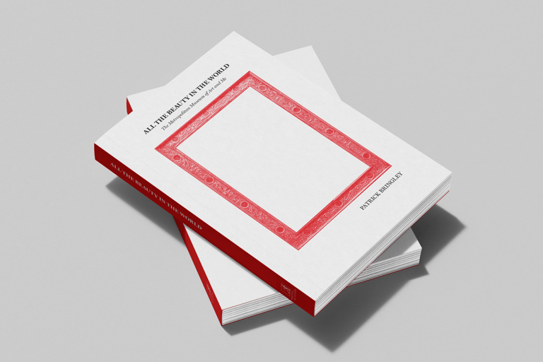 Berlinghiero's "Madonna and Child" (1230s) graces the front cover, representing the exploration of human experiences within the book. The vivid red hues reflect the Met's unique colour palette, while the back cover pattern is inspired by the museum's window designs, providing a unified visual portrayal of the book's themes and setting.