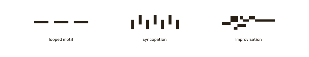 These keywords become the basis for a modular typographic system. The festival name is treated like notes in a score, broken into rectangular blocks and set on a strict grid. Repeated blocks echo loops, off-beat shifts suggest syncopation, and small variations within the structure act as visual improvisation.