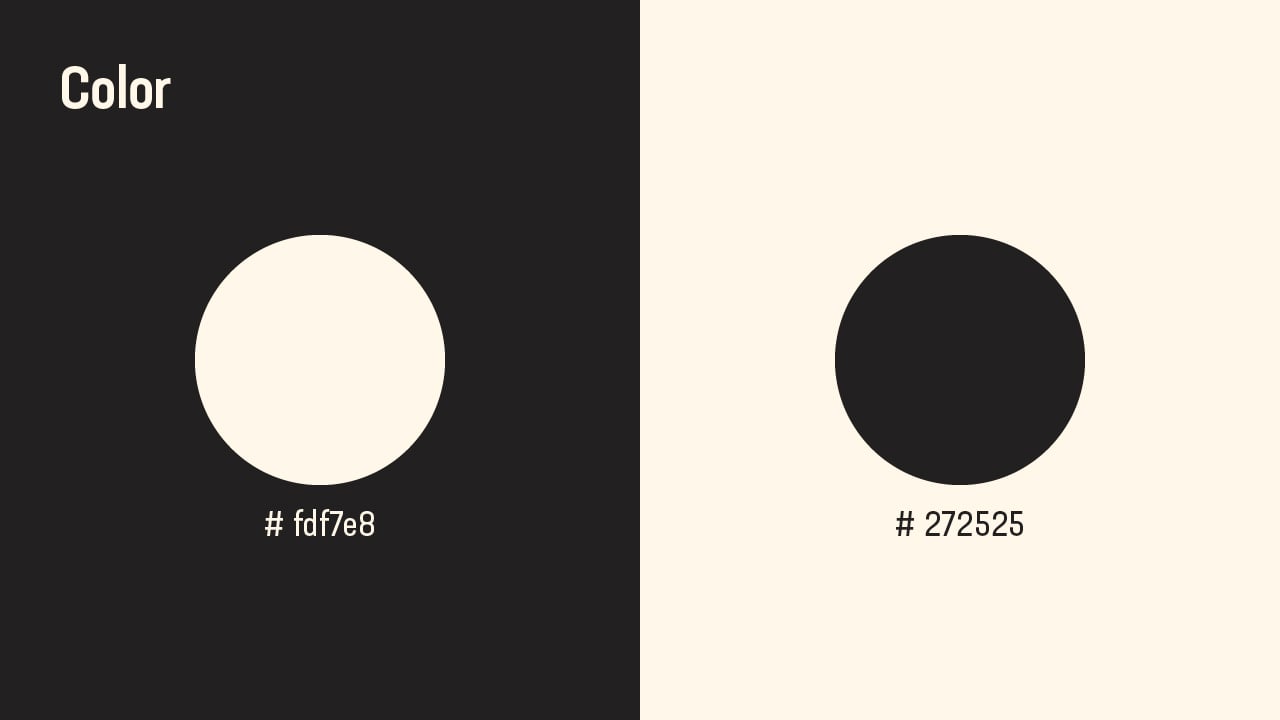 The cream color, named Cosmic Latte, represents the average color of the universe at present, symbolizing contemplation of the future. Paired with a darker hue, it creates negative space and emphasizes context.