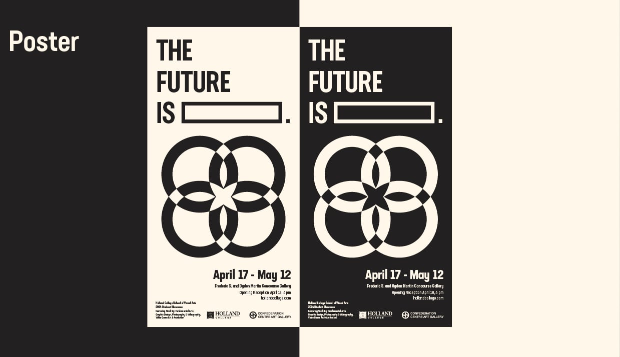 Students in Visual Arts programs created artwork under the theme 'the future is...' for the art showcase. While each piece reflects a personal perspective, I felt the poster design should represent the theme itself, focusing on the continuity of time as common ground.