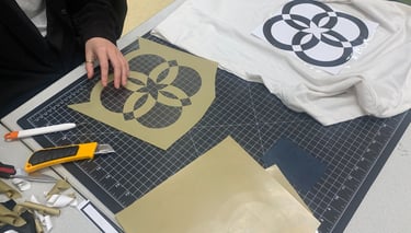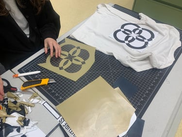 Our time in school focused on personal growth and attempts to connect with the world through our work. I represented these ideas with four rings, symbolizing personal growth, expanding one's world, connecting with visual arts programs, and engaging with society.